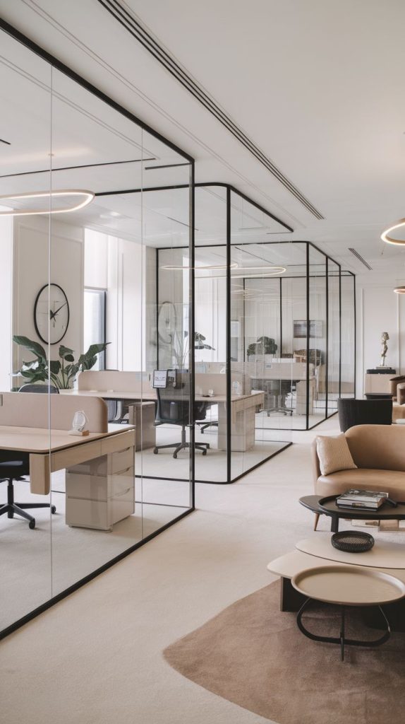 A complete office build-out featuring efficient space planning, modern aesthetics, and updated professional fixtures.